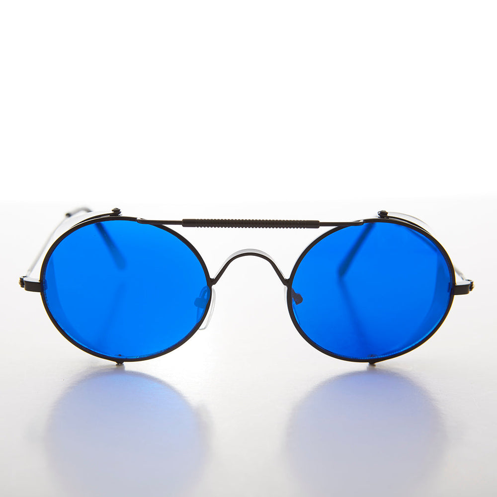 Blue Lens Steampunk Sunglass with Folding Side Shields - Bram 1