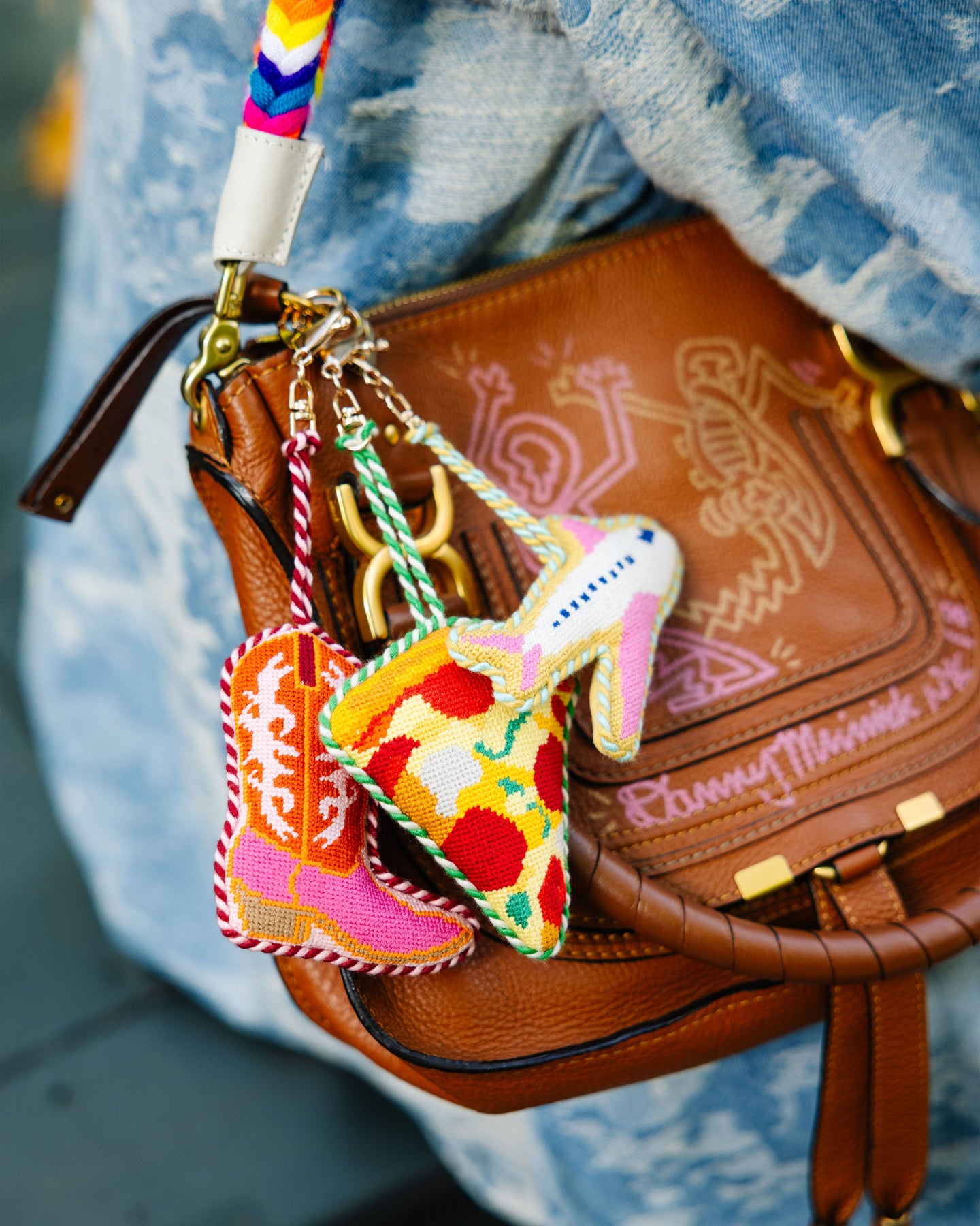 For the ones who know that accessories should never be boring. These needlepoint bag charms are for those who say, ‘Why blend in when you can carry a tiny taco?’ Whether it’s a taxi, a Stanley cup, or something cheeky, clip on your personality and let your bag do the talking.