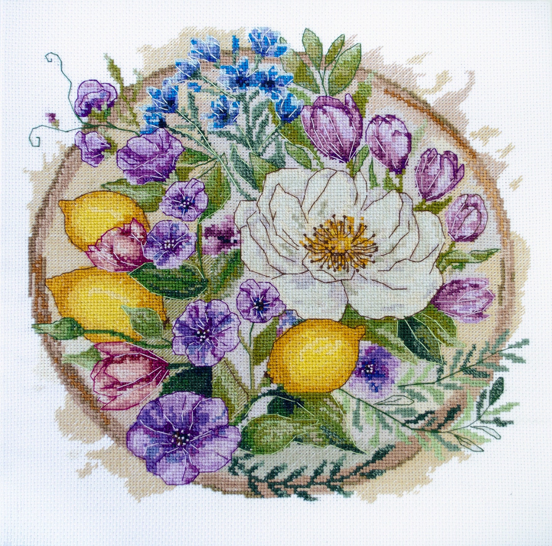 The set is completed with a canvas 320*320mm, white color, count 18, threads 104m. (56 colours). Dimensions 26*26cm / 10,24*10,24in. Made in Ukraine.