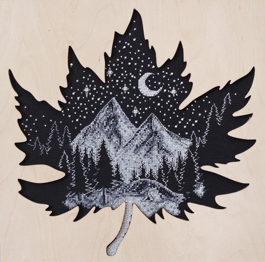 Kit contains: Canvas 100% cotton (white 14 count), convenient symbol scheme + instruction in 8 languages, needles. In addition, the set is completed with a decorative wooden frame with a visible part in the shape of a leaf and a back, floss on a convenient organizer - 100% cotton (6 colours). Dimensions 29,7*29,7cm / 11,69*11,69in. Made in Ukraine.