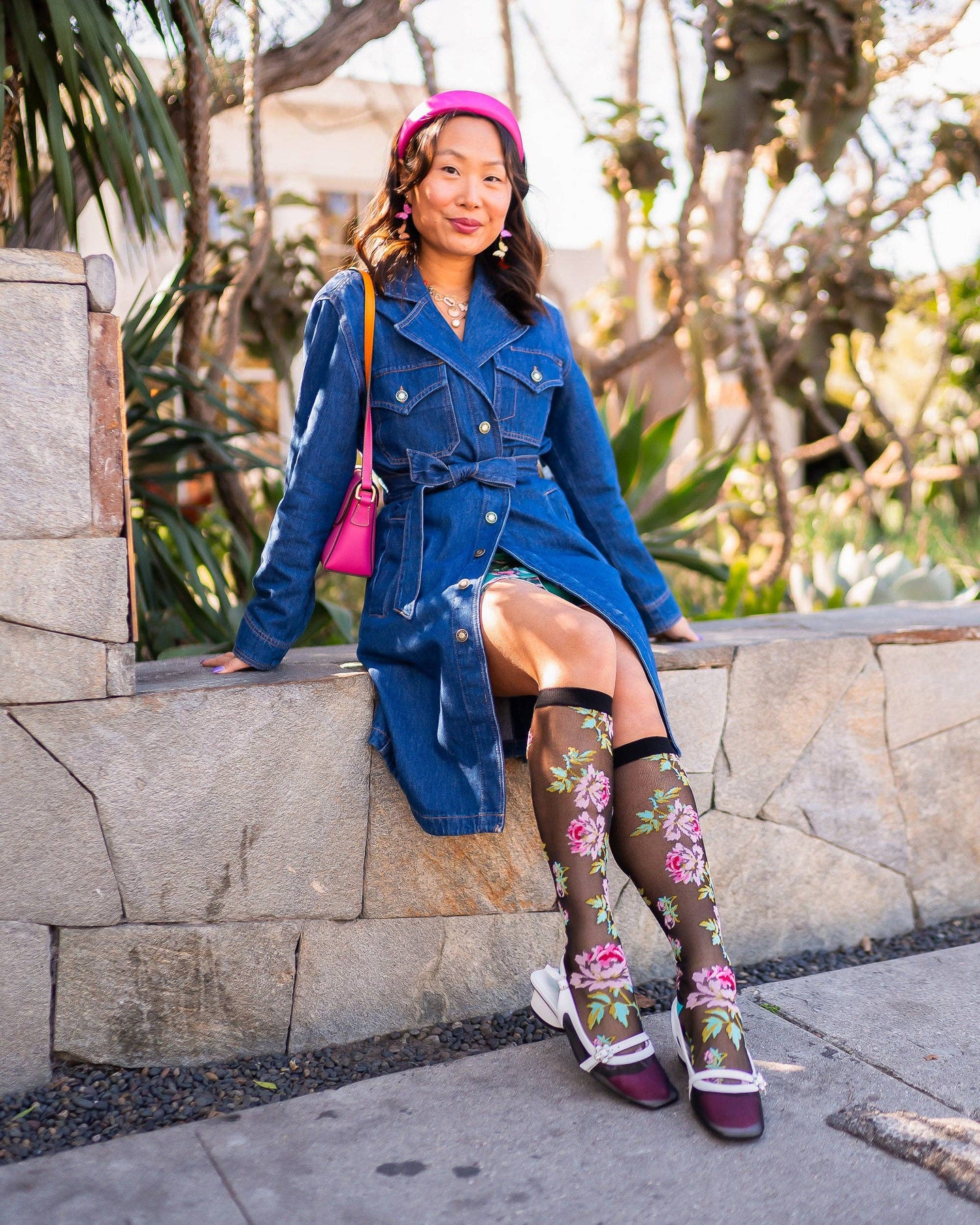 Our bestselling English Rose black sheer sock is now available in knee high length! Make a statement for Spring with pink roses that go all the way up to the knee, set against black sheer fabric for a sophisticated, Parisian chic vibe. Bring bold, whimsical charm to your Spring wardrobe with more of the print you love. One Size. Recommended fit US women's shoe sizes 5.5-9.5. 200 Needle Count. ✨ Funky yet elegant - no silly or childish patterns 🧦 Premium quality - durably made with comfortable stretch 👗 Unique - the perfect accessory to add individuality to your outfits