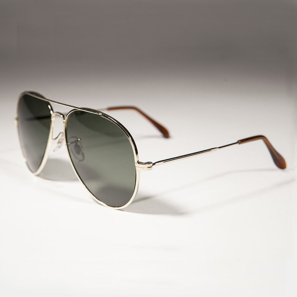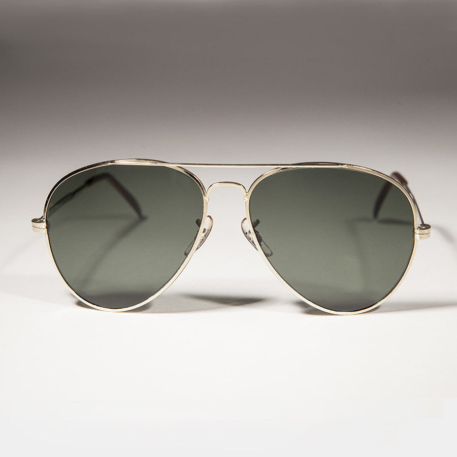The perfect metal Aviator in shape, size, and quality. As American as apple pie. A true classic. Notable ground and polished glass optical clarity quality lens. Always an excellent choice.