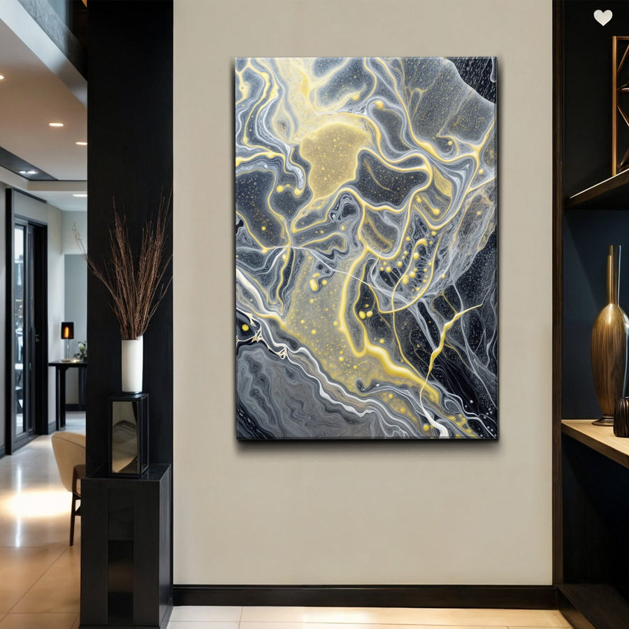 Introducing Golden Currents - Cool Wall Art, a mesmerizing piece that brings the flow of energy and light into your space. With its intricate swirls of gold and cool tones, this artwork will effortlessly elevate any room's ambiance, creating a tranquil yet striking focal point. Whether hung in a living room, office, or bedroom, Golden Currents adds a modern, sophisticated touch that blends seamlessly with various decor styles. This piece is more than just art; it's an experience, transforming your home into a gallery-like space.