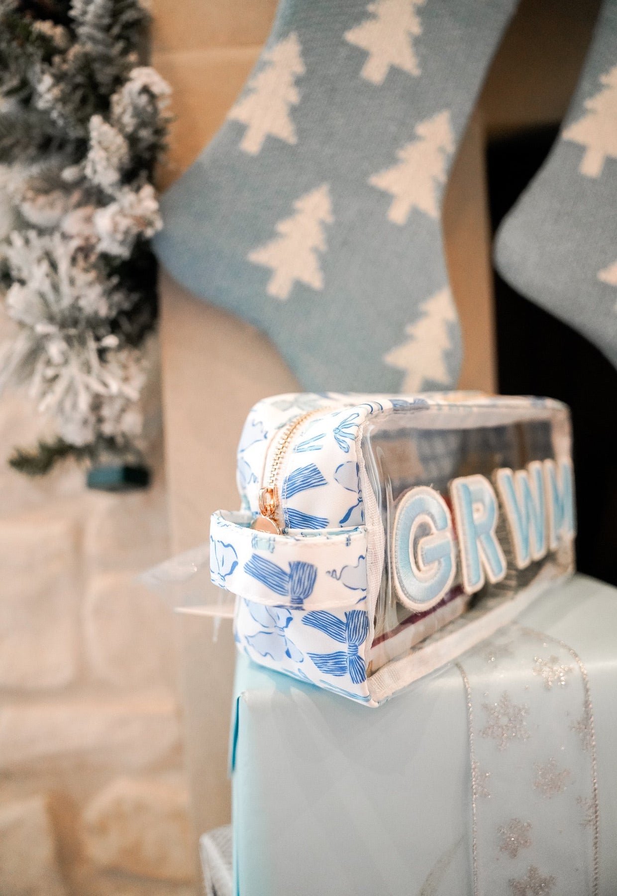 - Shop our first ever blue checkered nylon GRWM bag!