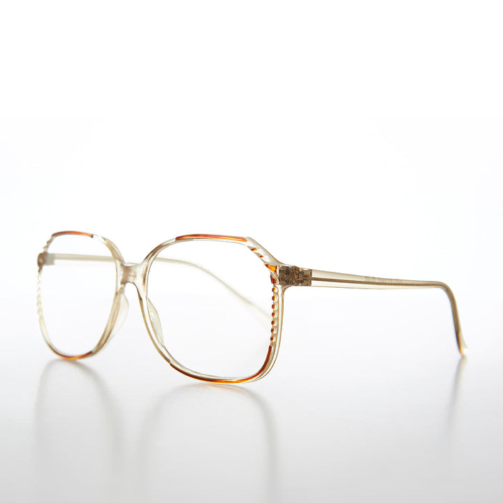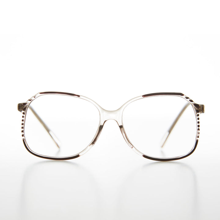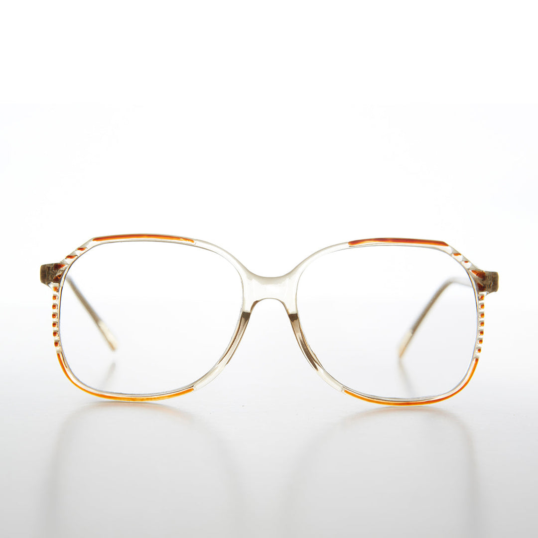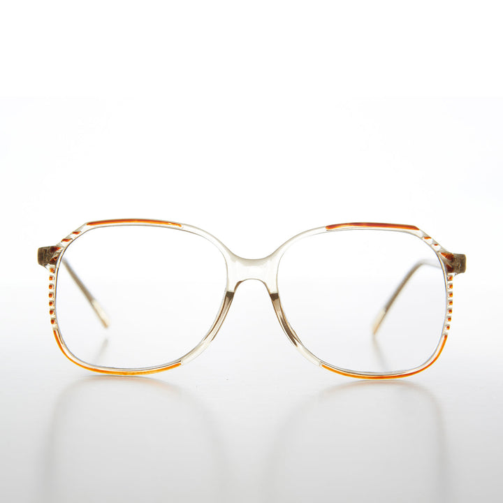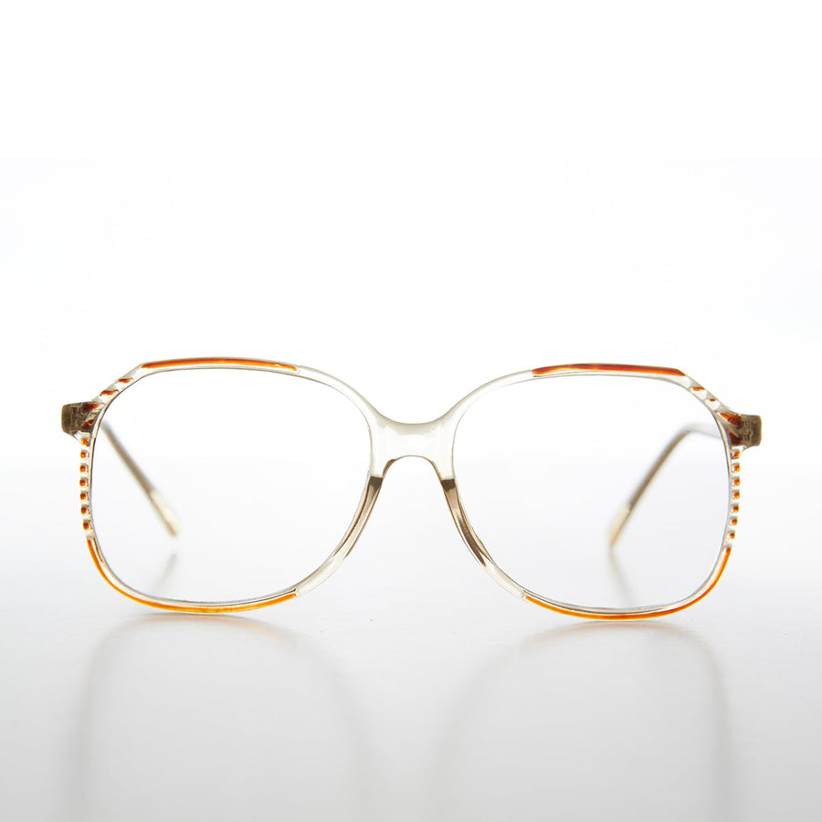 These beautiful reading glasses feature a large squared clear frame with color accents. A wonderful blast from the past.