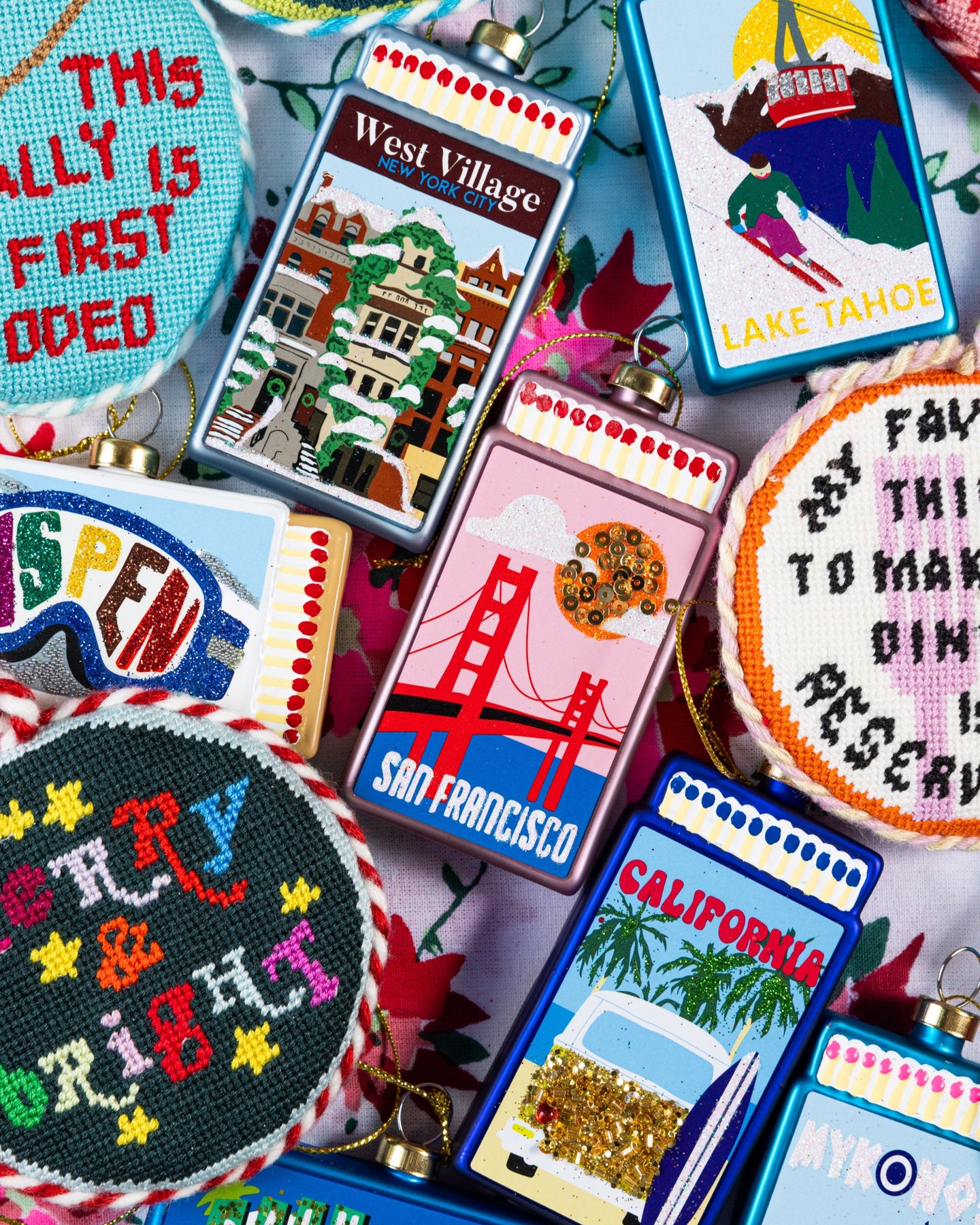 Take your holiday decor from trad to rad with Furbish's curated assortment of festive AF needlepoint pillows, ornaments, tree toppers, stockings, and tree skirts.
