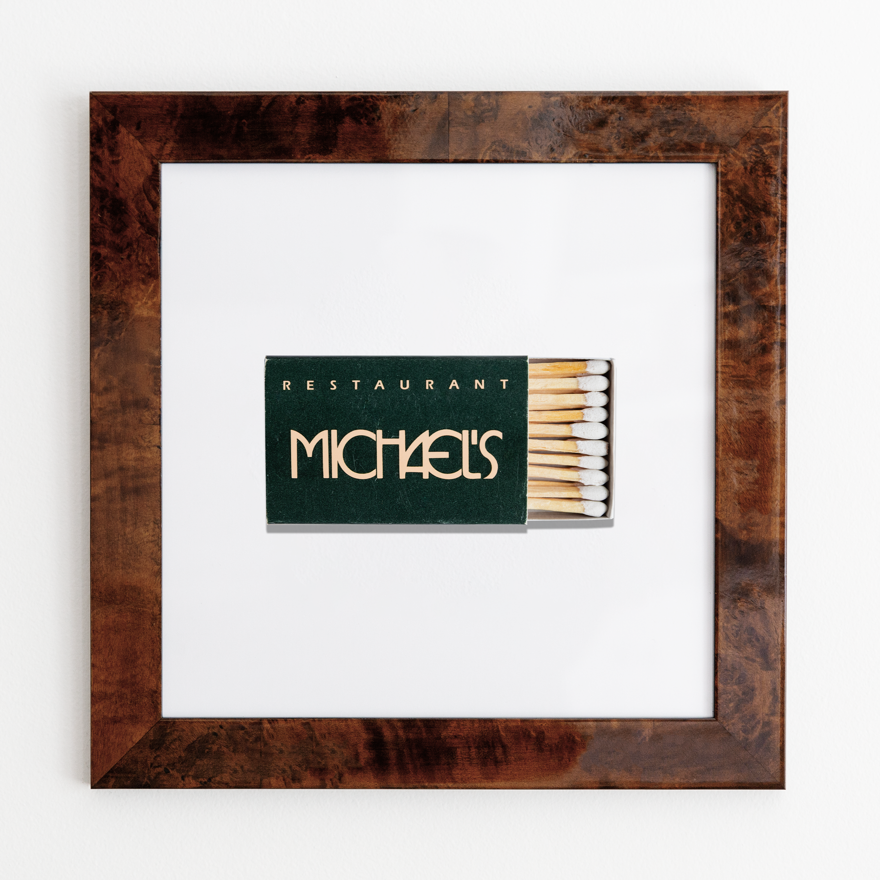 The Michael's Restaurant print showcases an iconic matchbook design.