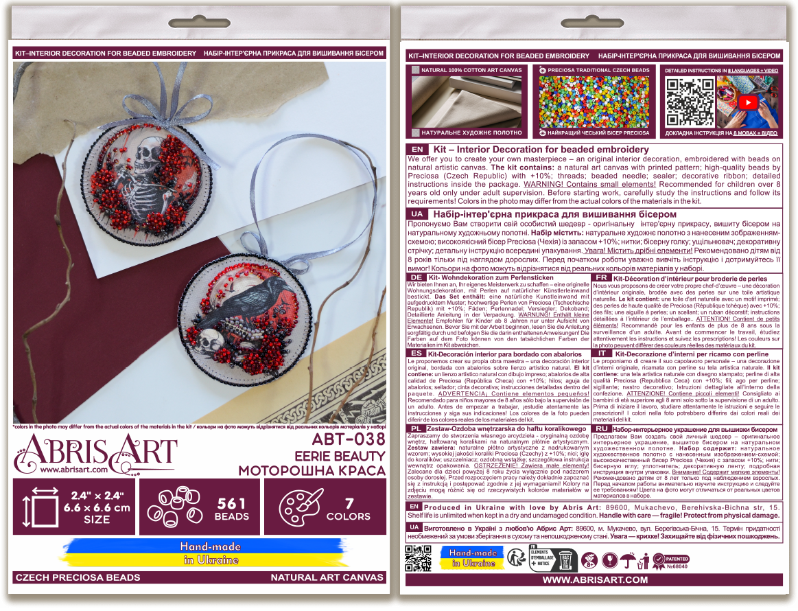 In each carefully assembled box Decoration Eerie beauty (Interior Decoration) after purchase and delivery you will find: a large piece of natural art canvas with a printed image-scheme (fabric for embroidery) larger than the size of the picture - 66 x 132 mm. - with enough stock to make it convenient to embroider and design the finished picture! The world's best beads Preciosa Ornela (Czech Republic), with "stock" - more than 561 beads, high-quality bead needles from Japan , and most importantly - detailed instructions, the scheme for beadwork with a key, specially developed by our designers for each plot separately and already applied to the canvas!