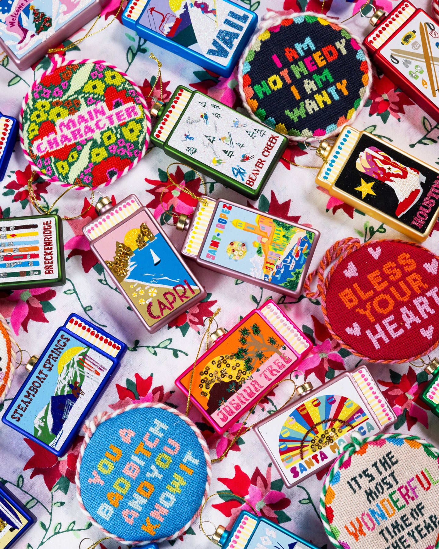 Let people know you're the star of the show this season with this cheeky needlepoint ornament on your tree. Backed in luxe velvet, we've revived this Southern staple with sayings that are sure to get a smile. See the full collection here and you will be sure to find one that sparks joy on your tree.