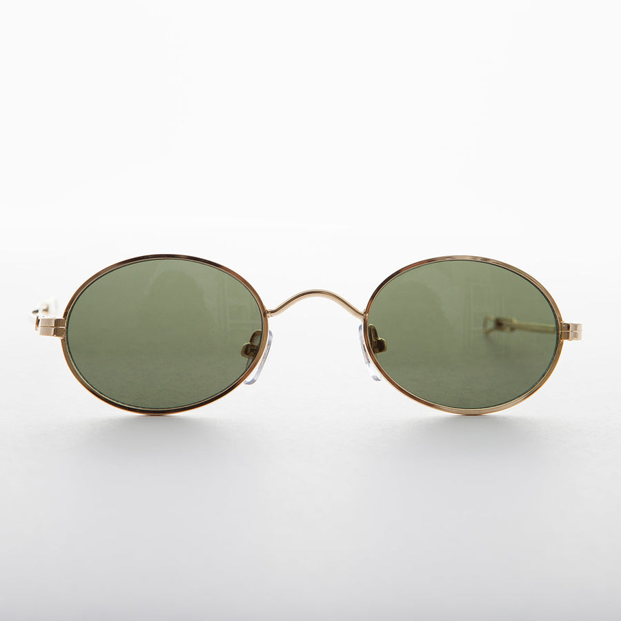 Functional, stylish, this oval-shaped sunglass includes rare temples that slide to adjust the length most comfortable for your personal preference. Unique and attractive. A real conversation piece. Prescription optical quality frame.