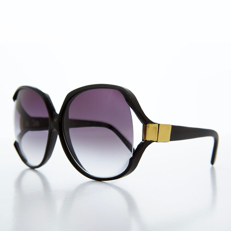 This iconic 80s sunglass features nice a roomy oversized frame with gold accents. New old stock. Never worn. Good condition. UV protection.