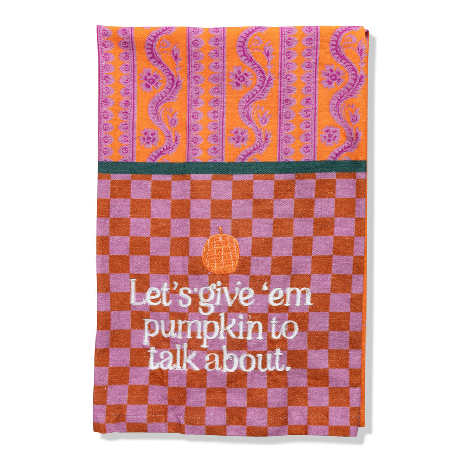 For the ones who know that fall is all about fun and flair. This tea towel is for those who say, ‘Let’s give them pumpkin to talk about,’ because nothing gets the conversation brewing like a little seasonal spice.