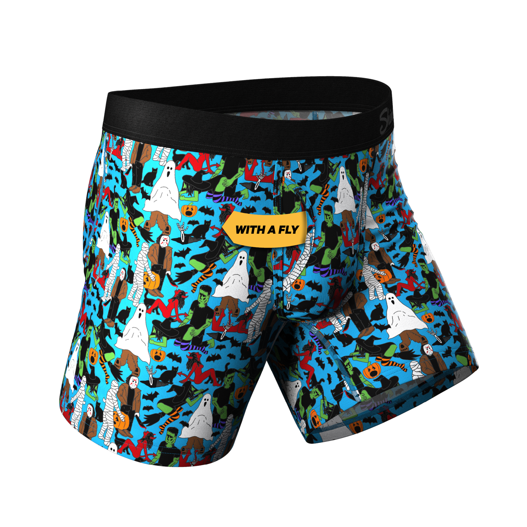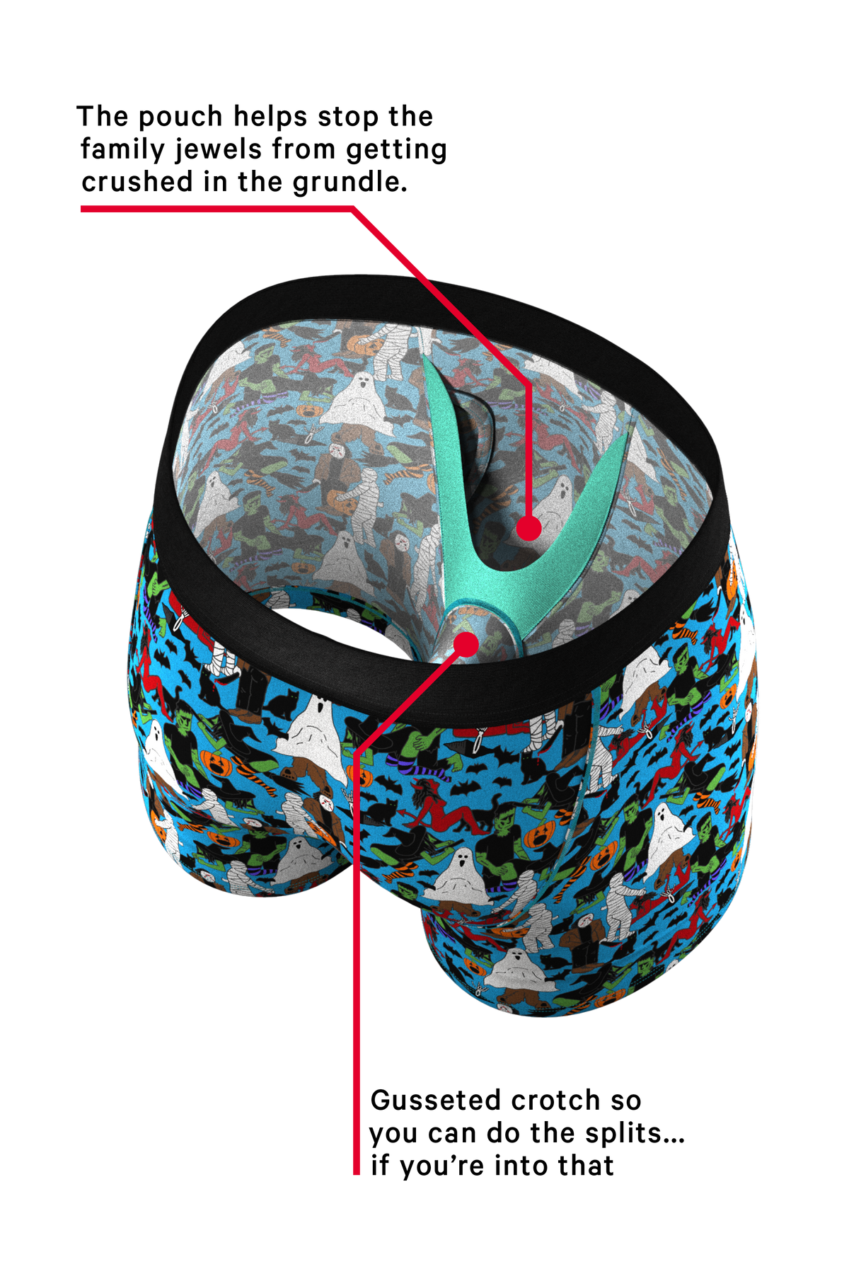 Studies show that horniness can turn people into irrational monsters, and based on this print we’re gonna have to say the science is solid. Donning these Halloween Ball Hammock® Boxers With Fly is only going to improve your chances with that sexy police officer at your Halloween party. We recommend verifying the authenticity of their costume before requesting an extensive bedside handcuff demonstration.