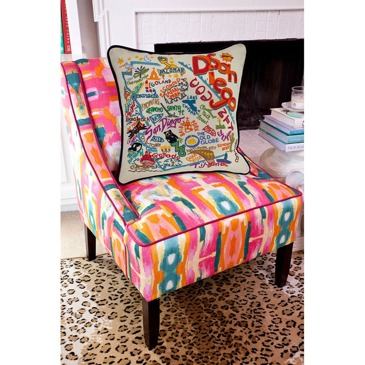 San Diego, CA Hand-Embroidered Pillow