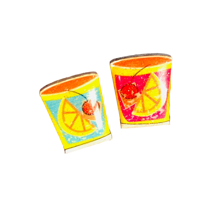 Get ready to sip your summer cocktails in style with our Summer Cocktail Stud Earrings by Rosie Rose Parker! These adorable studs feature hand-drawn illustrations of retro cocktail glasses, printed onto laser-cut wood and finished with a cute glass resin. Perfect for adding a playful touch to any outfit!