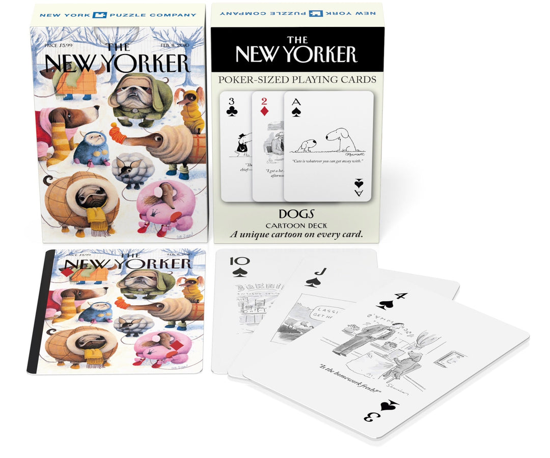 Make your card games even more fun! A standard deck of cards featuring a different dog themed New Yorker cartoon on every number.