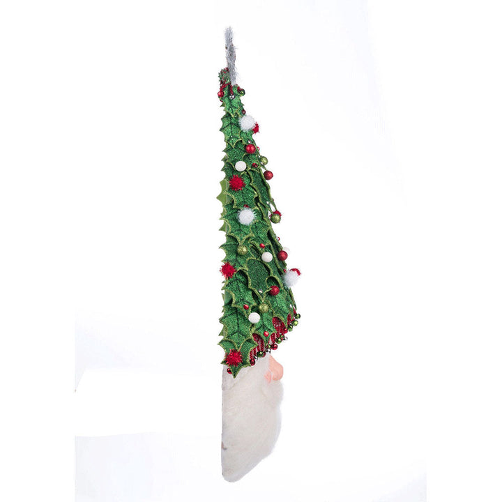 - Adorable bright green sparkled holly leaves create the curviest tree hat for this large wall piece that is sprinkled with lots of beaded shimmer and jingle bells