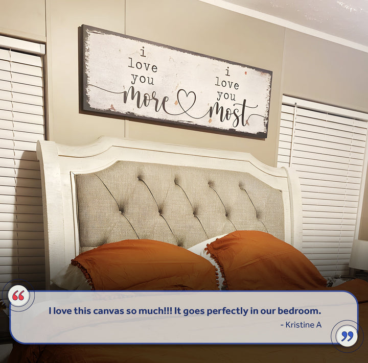 You want to shout it from the rooftops when you're in love. Or, at the very least, display a sign that says so. With the I Love You More, I Love You Most sign, you can do just that. This stylish wall art declares your love loud and clear and is sure to make your special someone smile. Available in three sizes, it's perfect for any space. Whether you hang it in your home or office, this sign is a beautiful way to show how much you care with our I love you more sign. So go ahead and declare your love with the I Love You More, I Love You Most wall art. It's sure to make your sweetheart swoon.