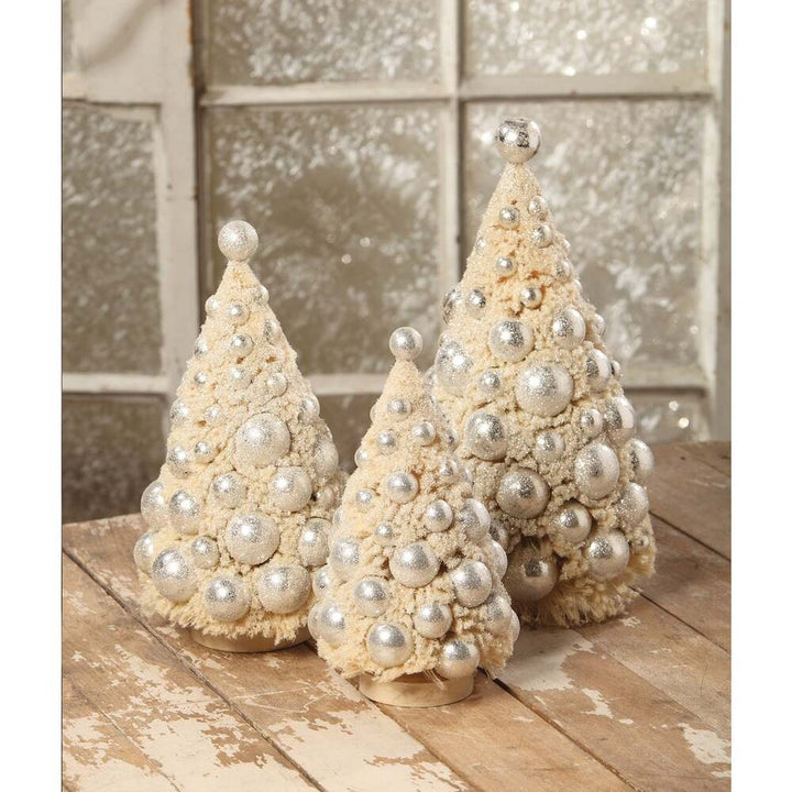 This stunning set of three ivory flocked bottle brush trees is the perfect way to bring a touch of elegance and sparkle to your holiday decor. Each tree is beautifully adorned with shimmering silver beads and delicate glitter, adding a festive, frosty glow to any space. Their soft ivory color and luxurious details make them ideal for creating a winter wonderland effect, whether displayed on your Christmas mantel or as part of a shimmering winter display. These trees effortlessly capture the magic of the season, bringing warmth and sparkle to your home. Whether nestled among other holiday treasures or showcased on their own, this set is sure to add a graceful, enchanting touch to your Christmas celebrations.