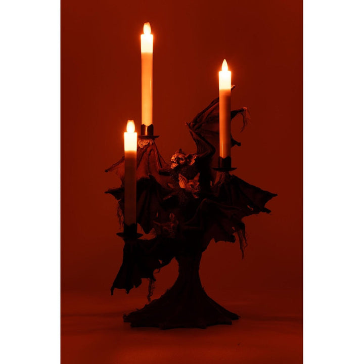 - Layers of gauze covered tree trunk and realistic bats with red gem eyes and fabric wings