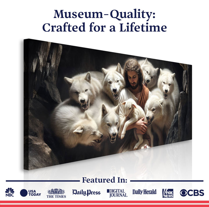 Jesus Protects The Lamb From Wolves Faith Wall Art IV