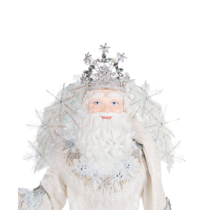 Meet King Winterfield Of Crystal Kingdom, a playful handcrafted doll from Katherine's Collection. This charming figure features soft, luxurious white fur-trimmed fabrics adorned with sparkling hand-beaded appliques, crystals, and sequins. His handmade rhinestone crown and airbrushed silver scepter add royal flair. Perfectly posed to stand or sit, he’s ready to bring a touch of winter magic to any display.