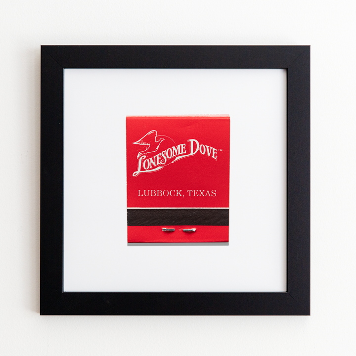 The Lonesome Dove Lubbock print showcases an iconic matchbook design.