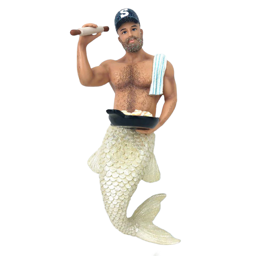 Sweeten up your holiday decor with the Merman Sticky Buns by December Diamonds. This charming ornament features a delightful merman in a playful pose, sporting a fun and festive sticky bun-themed outfit with a glittering tail that adds a touch of sparkle. Perfect for bringing a blend of culinary whimsy and holiday cheer to your Christmas tree, the Merman Sticky Buns is sure to add a deliciously unique touch to your festive celebrations.