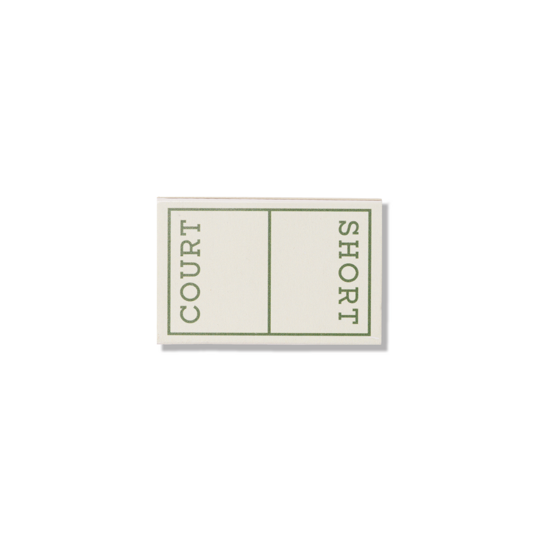 The Short Court print showcases an iconic matchbook design.