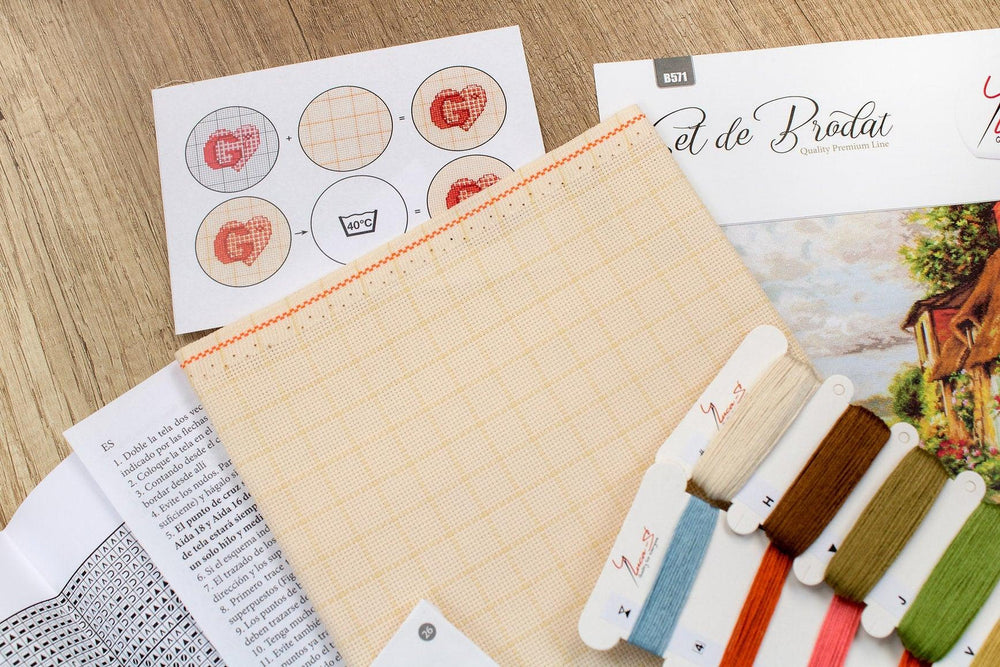 Kit contains: Fabric Zweigart Aida 18 ct., ivory color; Threads: Anchor mouline cotton, Number of Colors: 50. Embroidery instructions and chart. Dimensions: 42.5 x 34 cm.