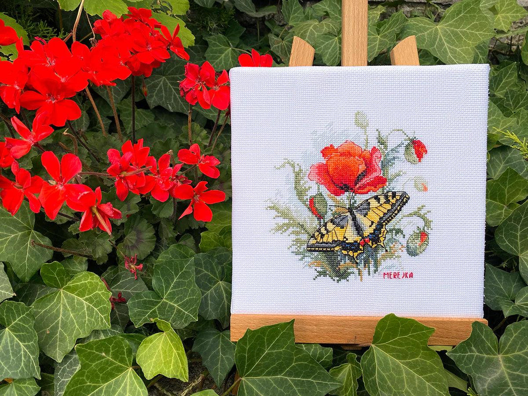 Kit contains: Canvas Zweigart Aida 16, ecru, DMC threads 26 colors, John James needles. The schema has colour symbols. There are two versions of schema with and without backstitches in each kit. Dimension 14x14 cm / 5,51x5,51 inches