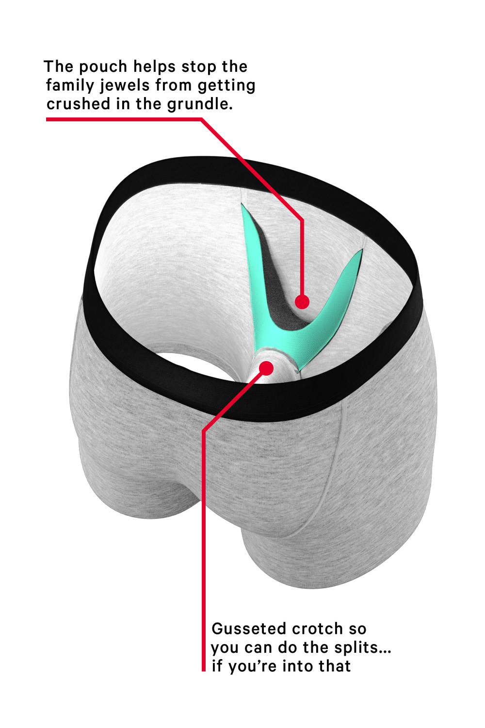 This pair of heathered grey Ball Hammock® boxers is the most competitive pair of pouch underwear on the market. Not only is it reminiscent of those competitive intramural days, but its the softest, most supportive pouch underwear on the planet.