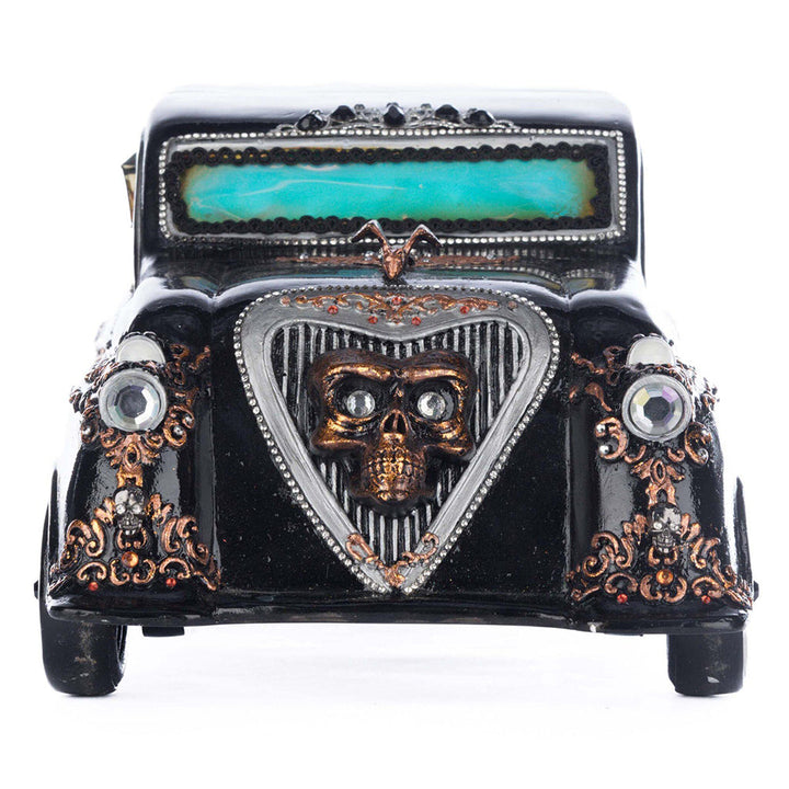 Step into the eerie world of the supernatural with The Macabre's Cursed Hearse from Katherine's Collection. Measuring 20 × 8 × 7 inches, this handcrafted piece features an intricately detailed hearse that exudes a sense of dark mystery and haunting elegance. The vintage, cursed design adds an air of gothic charm to your Halloween decor. Perfect for adding a spooky touch to any shelf, mantel, or Halloween vignette, this unique piece creates a dramatic, macabre atmosphere, making it an unforgettable statement for your seasonal display.