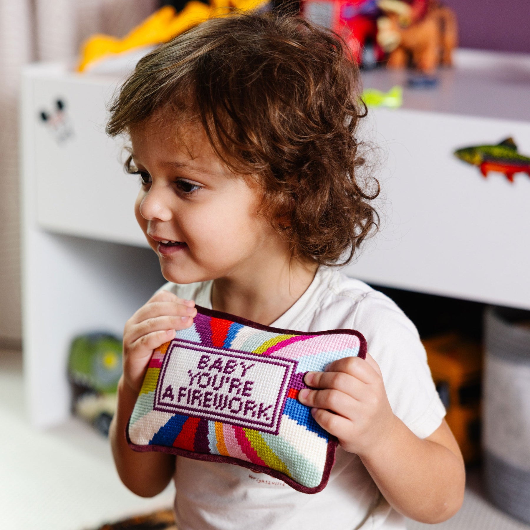 This mini pillow says “Baby You’re a Firework”—because every moment with them bursts with color, joy, and unstoppable energy. It’s for the bright stars, the bold dreamers, and anyone who knows they were made to shine.