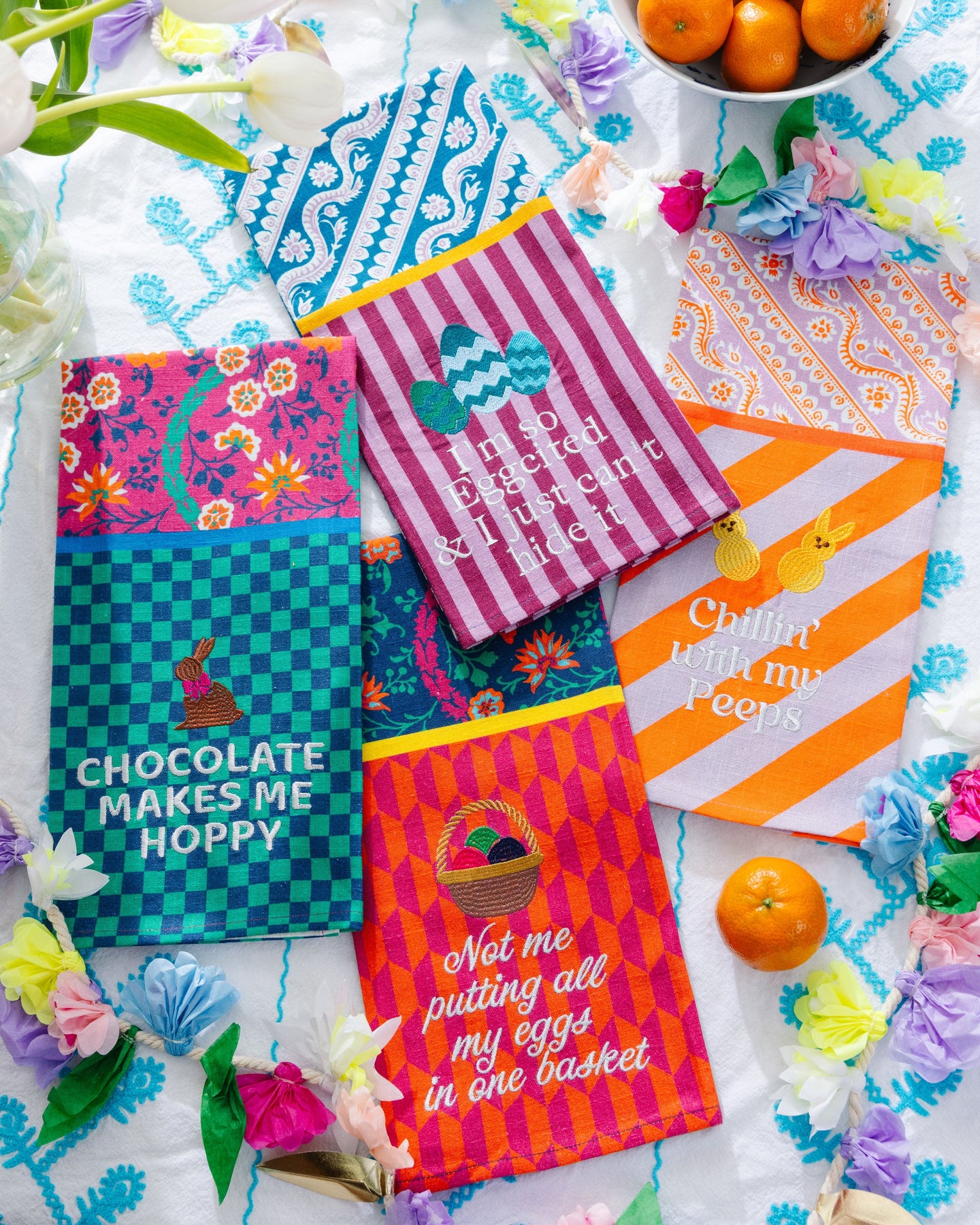This playful dish towel brings big energy and springtime cheer—perfect for Easter hosting, brunch spreads, or anyone who truly loves a good pun.