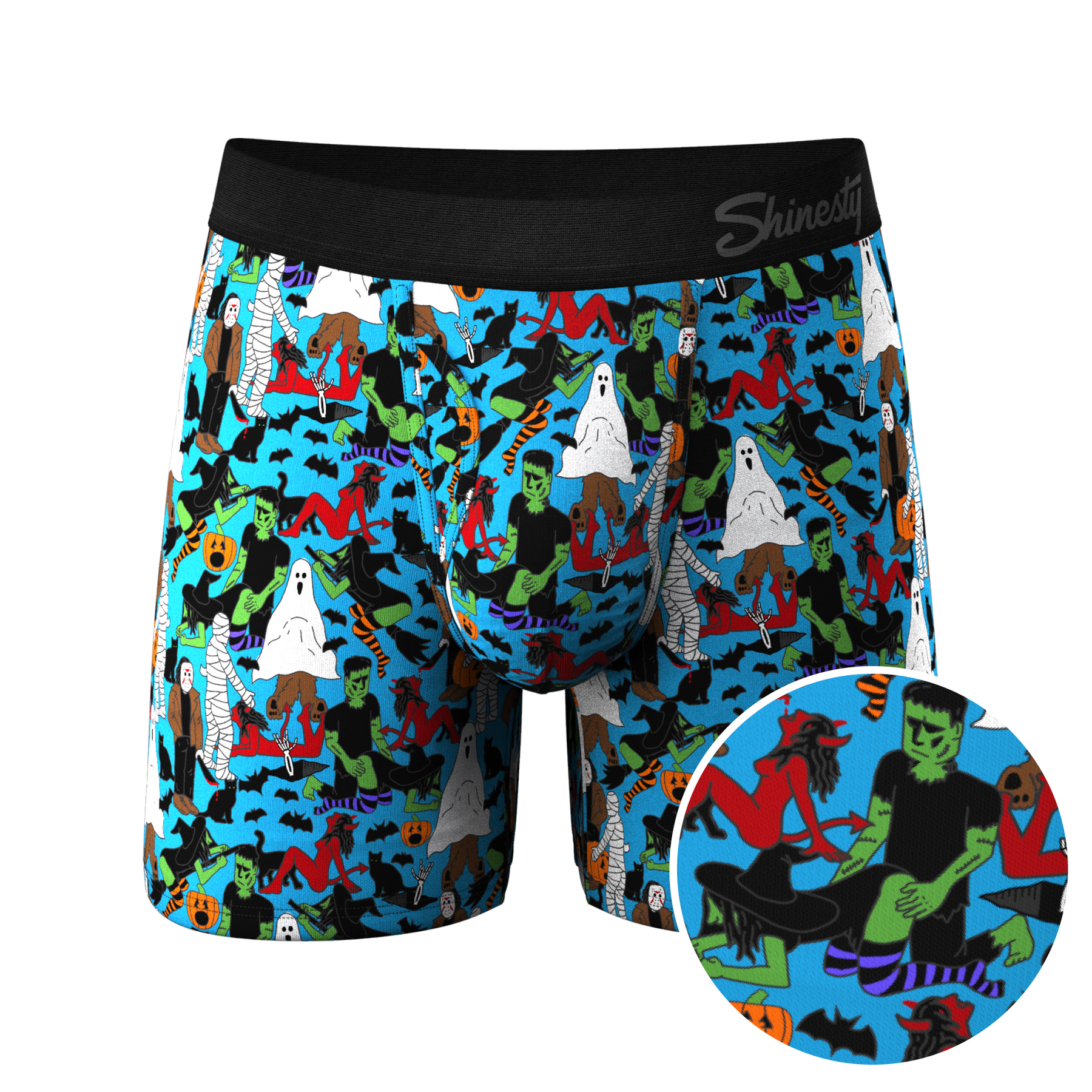 Studies show that horniness can turn people into irrational monsters, and based on this print we’re gonna have to say the science is solid. Donning these Halloween Ball Hammock® Boxers With Fly is only going to improve your chances with that sexy police officer at your Halloween party. We recommend verifying the authenticity of their costume before requesting an extensive bedside handcuff demonstration.