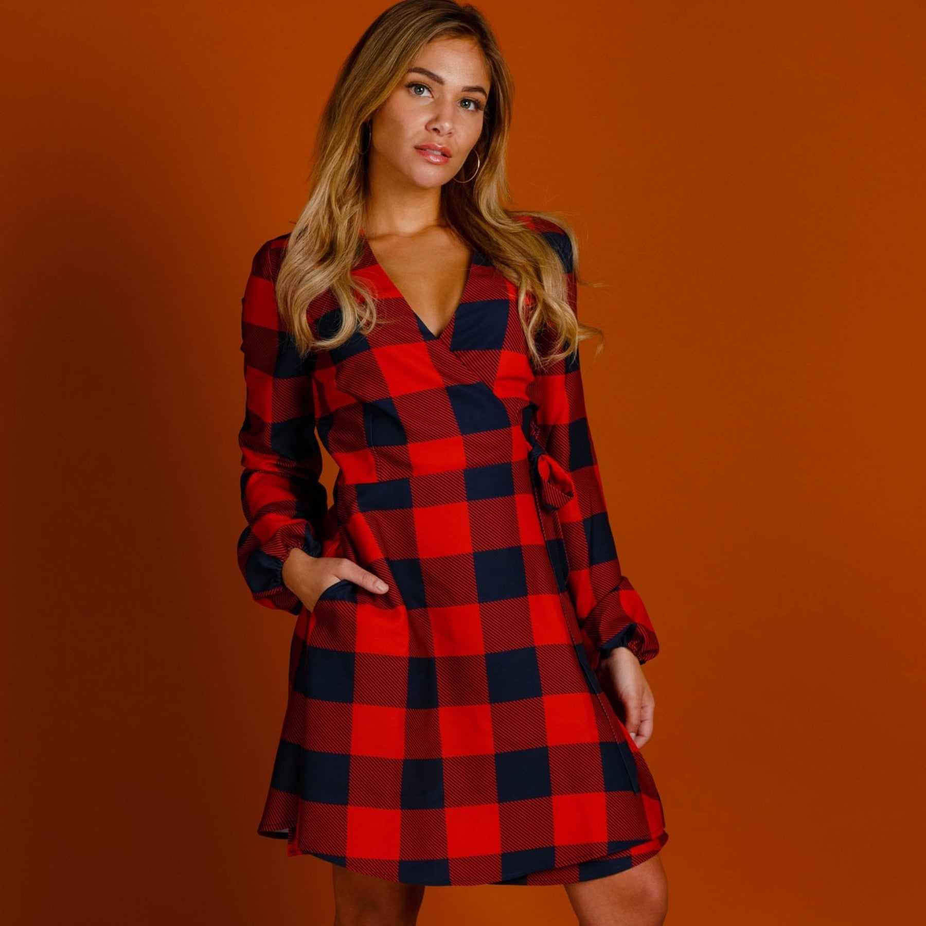 The Red & Black Lumberjack | Red Buffalo Check Christmas Wrap Dress