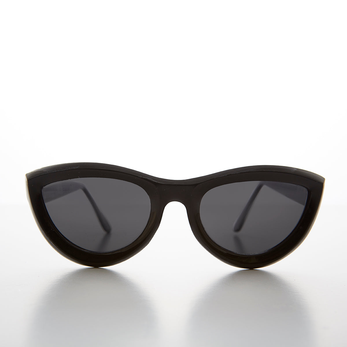 Bold and beautiful chunky cat eye sunglass. They do not make them like this anymore. Great quality acetate with optical wire core temples. Look at the fabulous shape and cut in this frame. Creative and bold style, this truly is the cat's meow. Vintage fab!