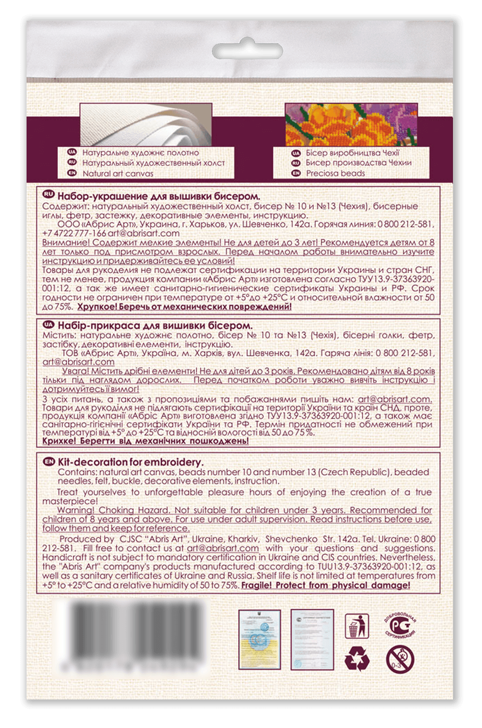 Kit contains: Beads, needles, felt, decorative elements, instructions. In each carefully assembled box you will find: a large piece of natural art canvas with a printed image-scheme (fabric for embroidery) larger than the size of the picture - with enough stock to make it convenient to embroider . The world's best beads Preciosa Ornela (Czech Republic), with "stock" , high-quality bead needles from Japan , and most importantly - detailed instructions, the scheme for beadwork with a key, specially developed by our designers for each plot separately and already applied to the canvas. Beads 26 colours. Dimensions 7*6,6cm / 2,76*2,6in. Made in Ukraine.
