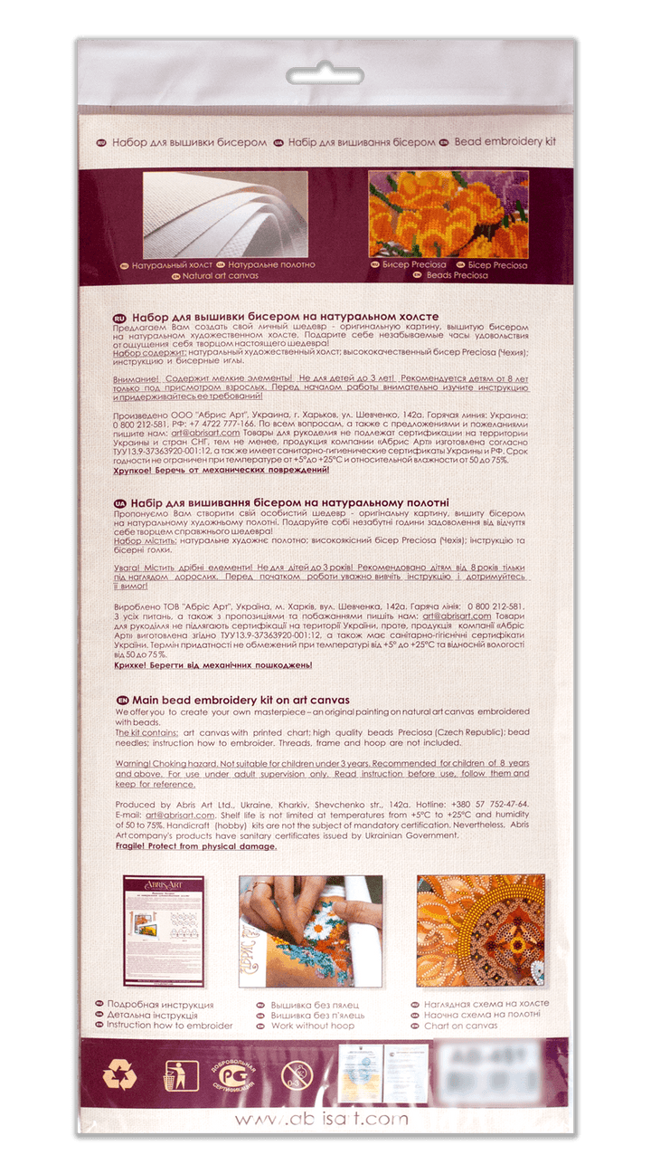 Kit contains: In each carefully assembled box Bead Embroidery Kit Golden lights (Winter tale) after purchase and delivery you will find: a large piece of natural art canvas with a printed image-scheme (fabric for embroidery) larger than the size of the picture - 380 x 280 mm. - with enough stock to make it convenient to embroider and design the finished picture! The world's best beads Preciosa Ornela (Czech Republic), with "stock" - more than 6821 beads, high-quality bead needles from Japan , and most importantly - detailed instructions, the scheme for beadwork with a key, specially developed by our designers for each plot separately and already applied to the canvas! It is so convenient and clear that even a person who wants to try himself in beadwork for the first time, and buy this kit - will understand everything in 5 minutes! The set is additionally completed with Preciosa beads #13 - microbeads - 13 colors, a needle for embroidery with microbeads, decorative stones - glass - hemisphere - 3 types (11 pcs.). The possibility of gallery design of embroidered work is provided (without baguette and passepartout). Beads 35 colours. Dimensions 28*38cm / 11,02*14,96in. Made in Ukraine.