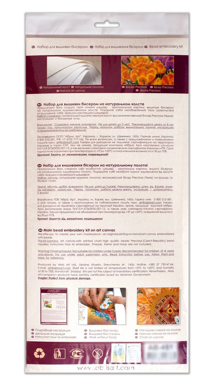 In each carefully assembled box Main Bead Embroidery Kit Origin of new moon (Deco Scenes) after purchase and delivery you will find: a large piece of natural art canvas with a printed image-scheme (fabric for embroidery) larger than the size of the picture - 320 x 320 mm. - with enough stock to make it convenient to embroider and design the finished picture! The world's best beads Preciosa Ornela (Czech Republic), with "stock" - more than 13415 beads, high-quality bead needles from Japan , and most importantly - detailed instructions, the scheme for beadwork with a key, specially developed by our designers for each plot separately and already applied to the canvas!