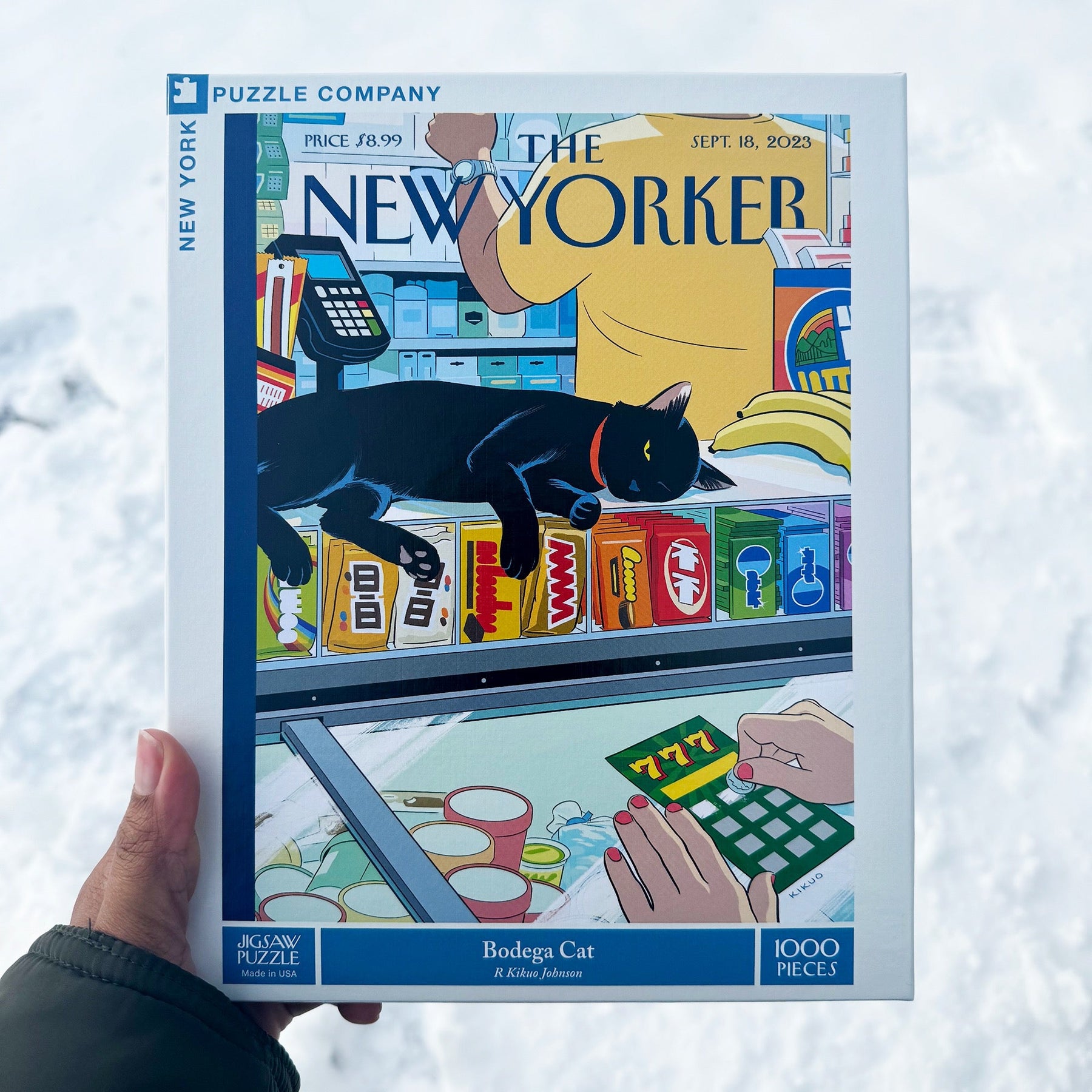 Immerse yourself in the quintessential New York moment with Bodega Cat, a best-selling 1000 piece jigsaw puzzle for 2024, inspired by R. Kikuo Johnson’s iconic cover art for the September 18, 2023, issue of The New Yorker. This vibrant scene captures a beloved bodega cat lounging contentedly on the counter, surveying the lively activity of a customer enjoying a scratch ticket and shelves stocked with popular convenience items. Each detail—brightly colored products, the familiar bodega clutter, and the cat's calm presence—brings the unique charm of a neighborhood bodega to life. Perfect for puzzle fans, art lovers, and anyone drawn to the city’s energy, Bodega Cat makes a fantastic holiday gift, letting you piece together the essence of a true New York experience, packed with color, personality, and that unmistakable bodega vibe.
