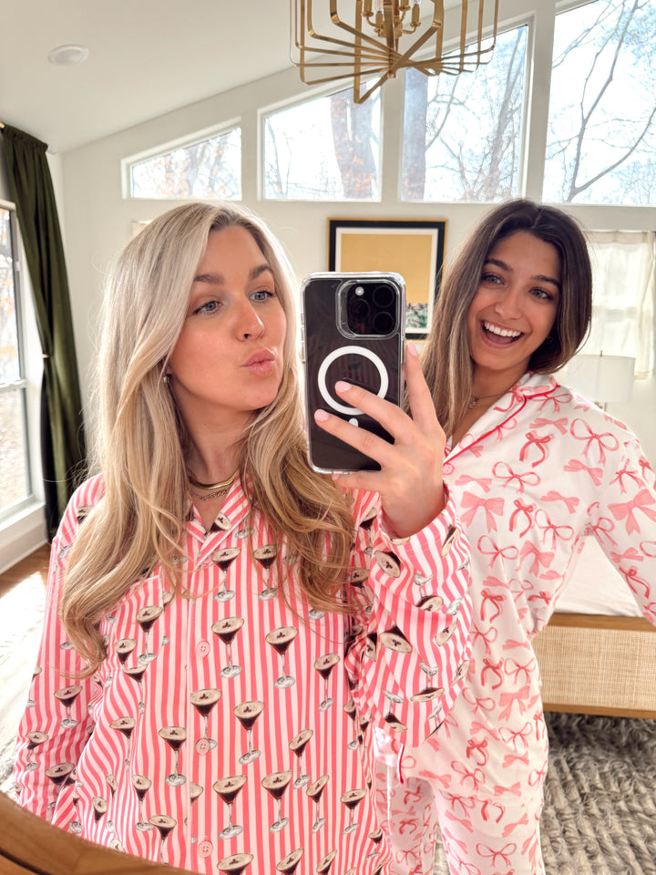 - The girliest set for all your holiday festivities! Pink + red bows!