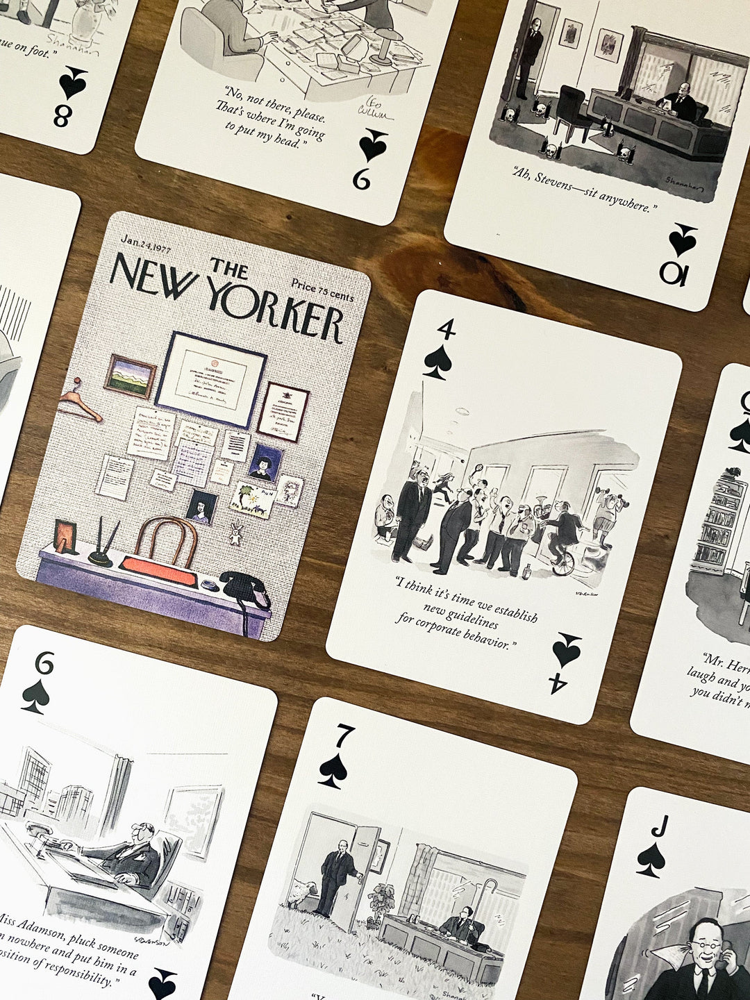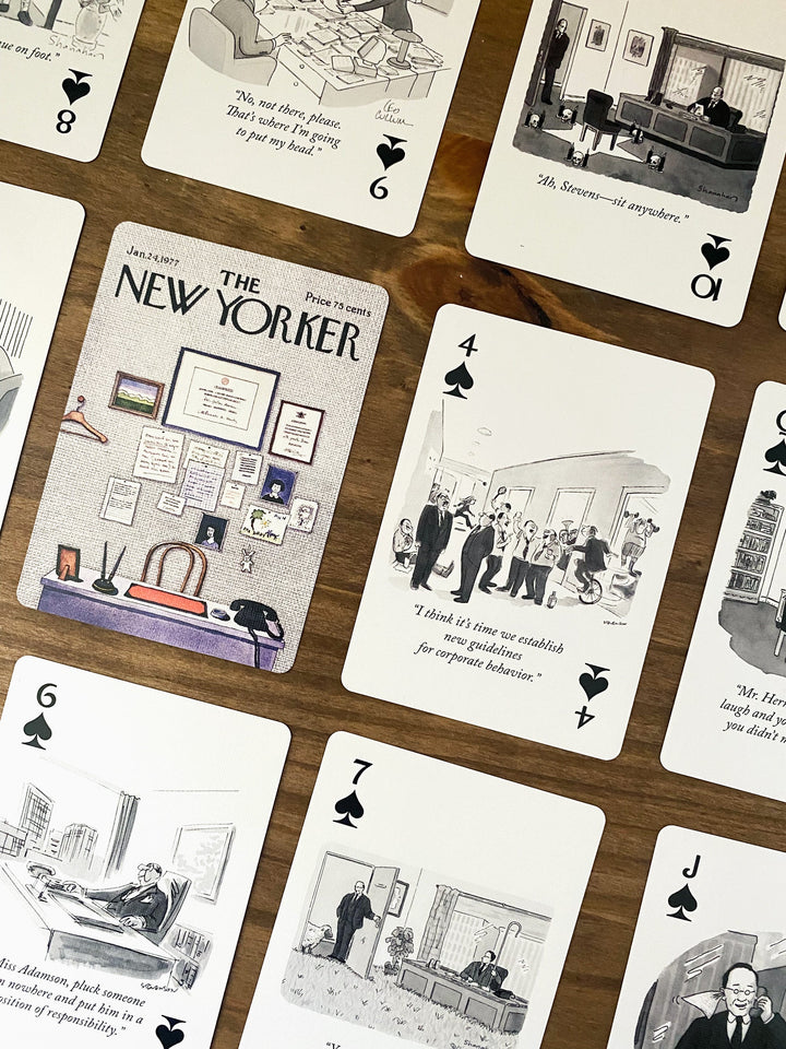 Make your card games even more fun! A standard deck with a different business or work themed New Yorker cartoon on every number will keep everyone smiling.
