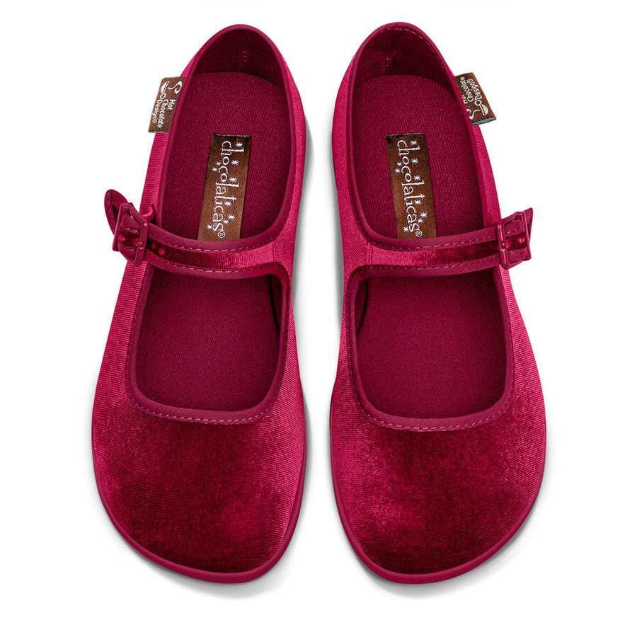The Chocolaticas® Red Wine Women's Mary Jane Flat is perfect for any occasion. Crafted from velvet fabric upper and an inner soft fabric layer, this shoe is designed to ensure maximum comfort with its cushioned inner sole and non-marking rubber sole. An adjustable buckle strap helps you get the perfect fit, and the vegan construction is sure to please. Be sure to consult the size chart for the best fit.
