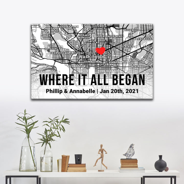 The ideal gift for your spouse, this Customized Couple Street Map wall art lets you show off your sweet and romantic side. In addition to being a decorative item, this Customized Couple Street Map canvas print is also a labor of love. Put a visible reminder of where the abundant love in your family began on the wall!