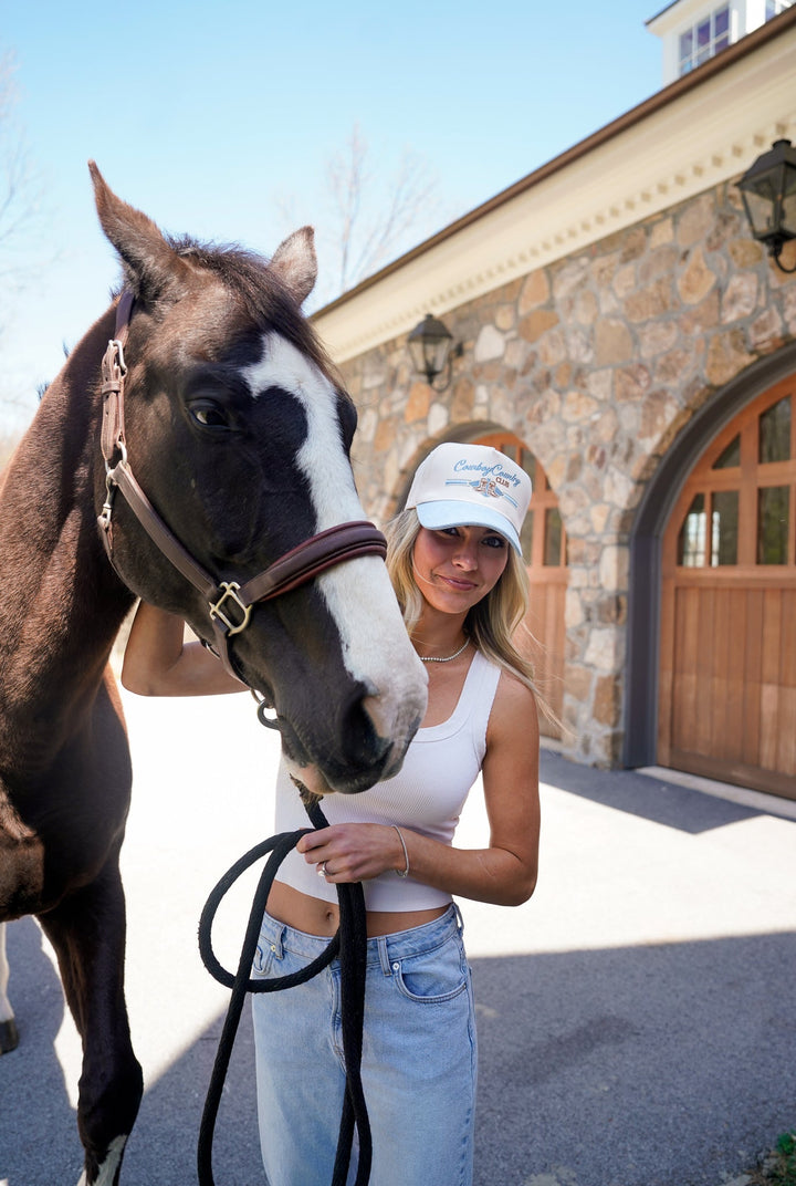 - Denim Bill with Natural Profile vintage trucker hat, with adjustable snapback