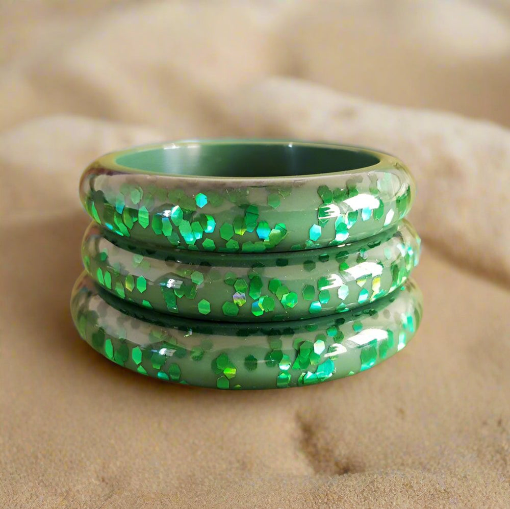 Stunning glam reproduction Lucite confetti bracelet. Perfect to add a bit of Hollywood sparkle to your life!