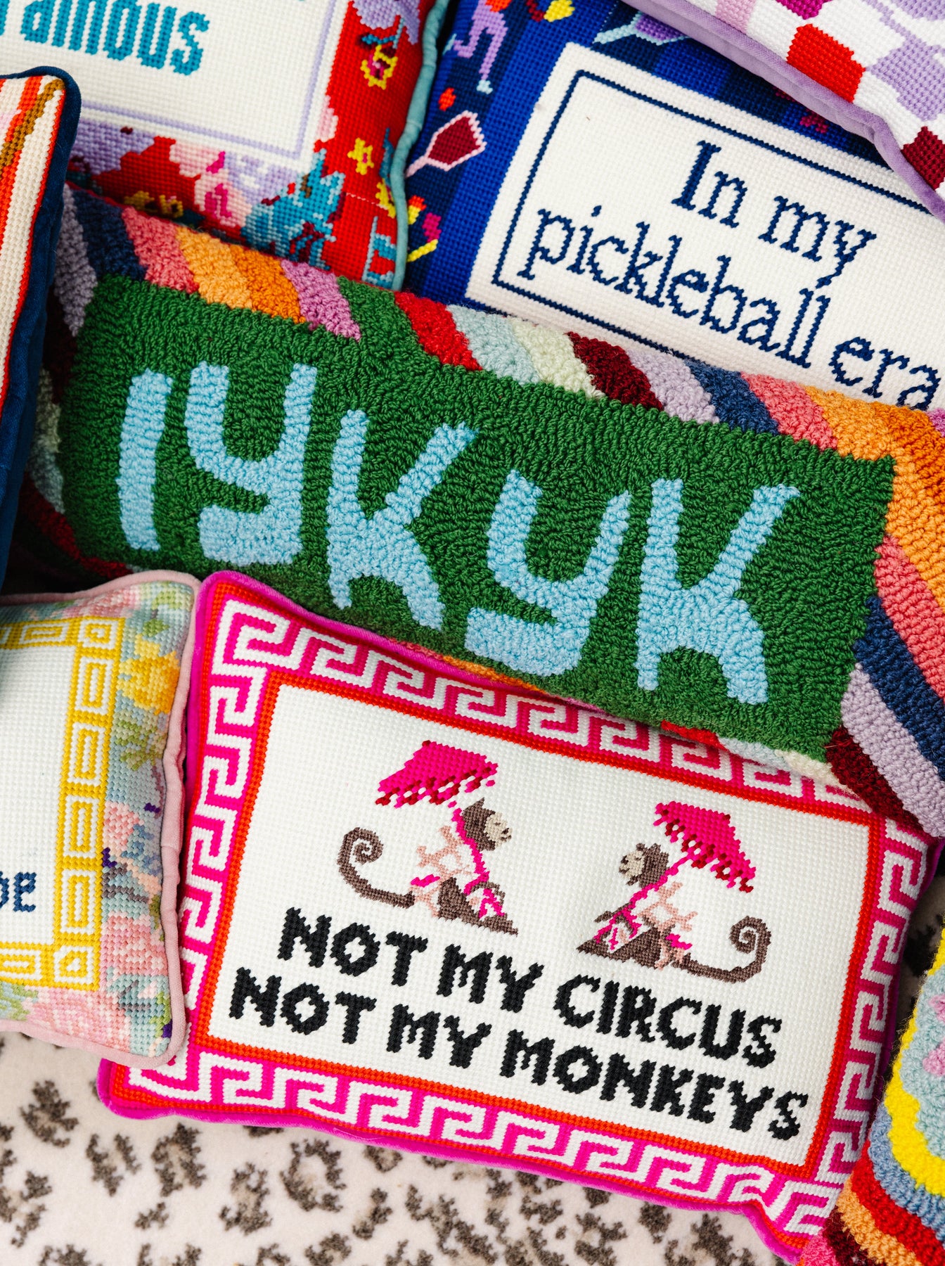 Embrace the latest joy-inspired decor movement, and transform your home with Furbish Studio’s Needlepoint and Statement Pillows. Our pillows feature vibrant patterns, playful prints and uniquely-you sayings that spark happiness and guarantee LOLs – because your home should make you smile every day.