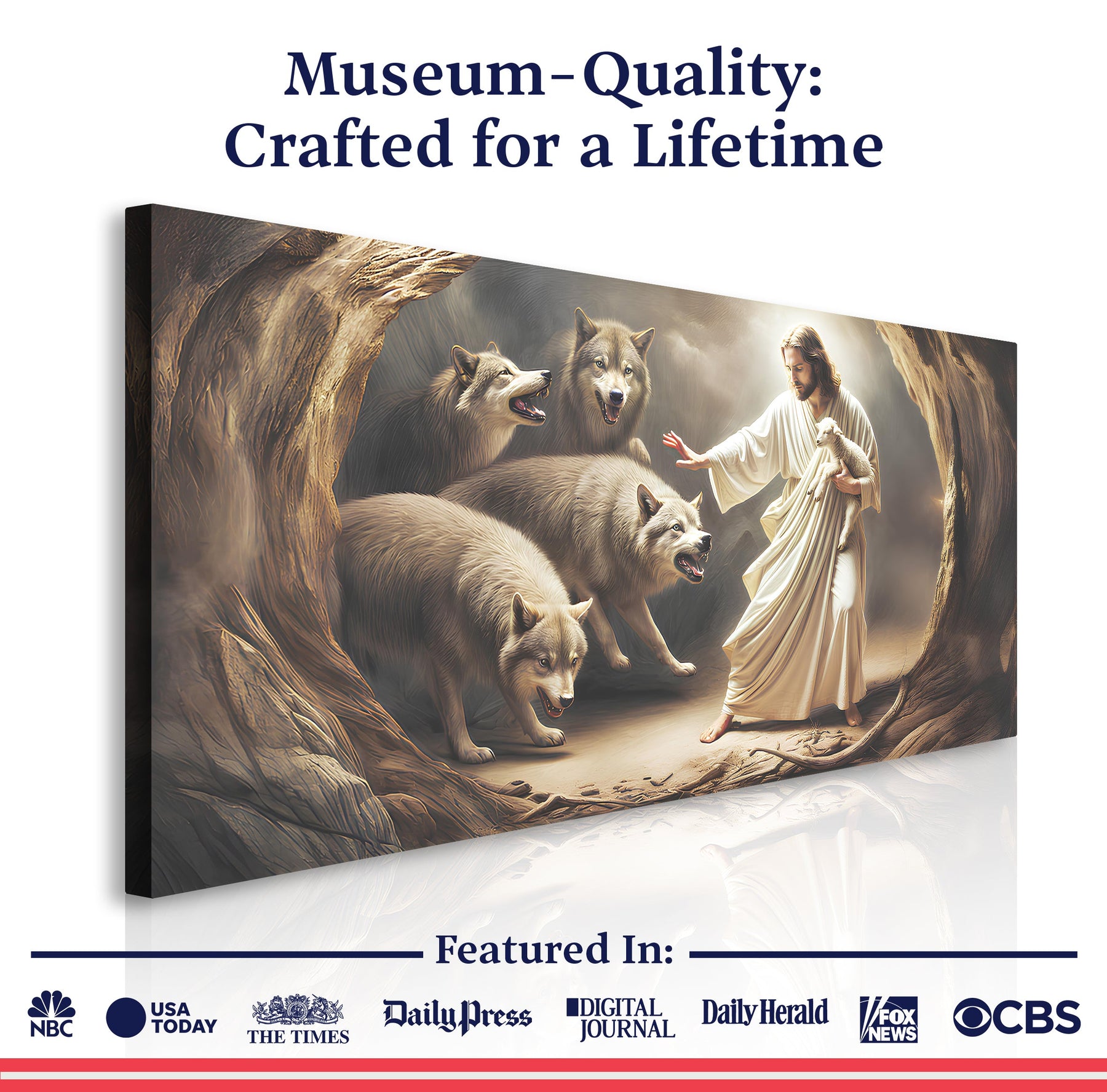 Jesus Protects The Lamb From Wolves Faith Wall Art III